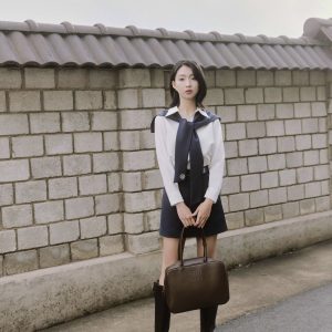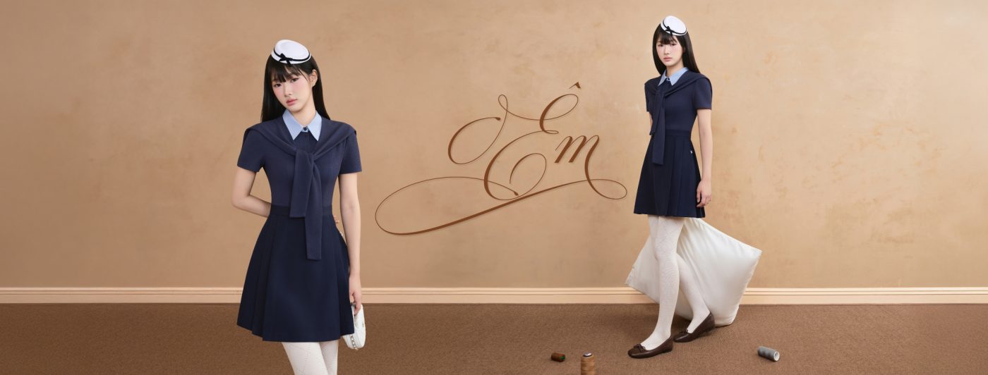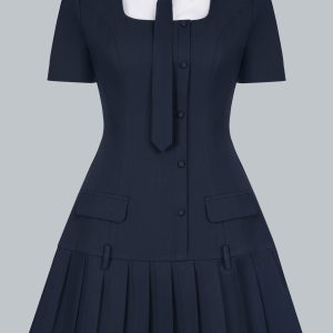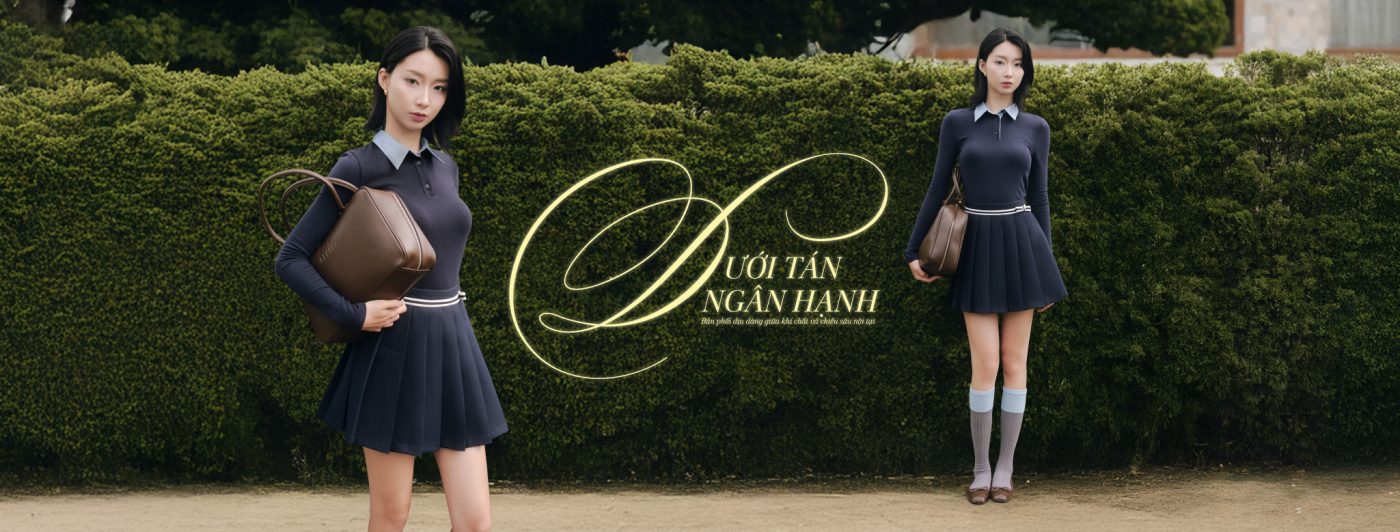 Đầm cổ U nhỏ phối sơ mi, chân xếp ly