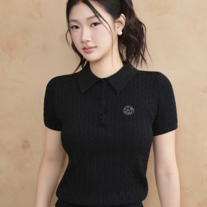 Áo mongtoghi kẻ ngang ôm sát có bèo viền cổ, tay áo