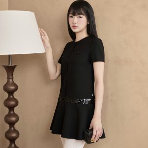 Đầm cổ tròn túi ốp phối kim sa